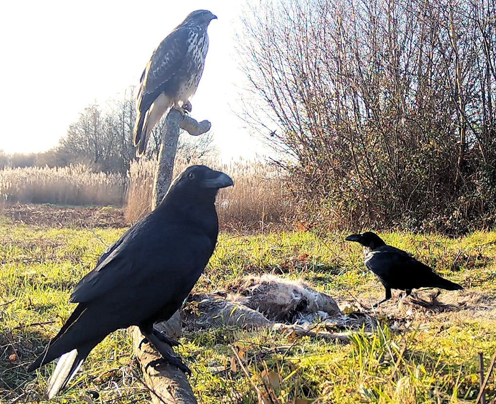 Unusual to see the Marsh Harrier scavenging carrion alongside the usual, Ravens, Kites and Buzzards.
